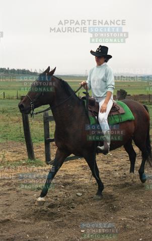 Johanne Laframboise, trésorière du Festival western, est en selle sur son cheval.