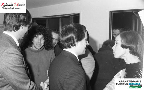 Des personnes fêtent lors de la soirée électorale provinciale de 1981.