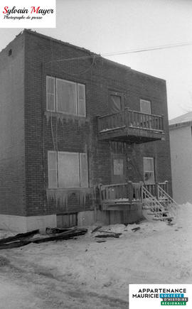 Vue sur un bâtiment endommagé par le feu. L'immeuble est situé au 197 de la 113e rue.
