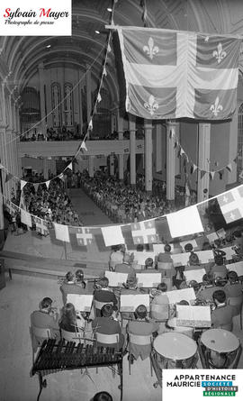 Une église est remplie de personnes célébrant la Saint-Jean-Baptiste.