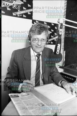 Portraits de Gaston Boisvert lors d'une exposition de ses œuvres à Grand-Mère.